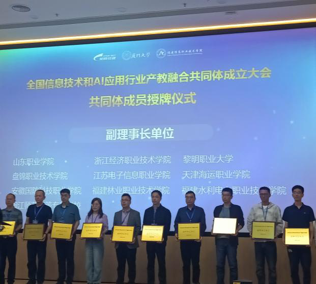 本网讯11月8-10日,全国信息技术和AI应用行业产教融合共同体成立大会在福建福州星网锐捷科技园顺利召开,学院当选为全国信息技术和AI应用行业产教融合共同体副理事长单位。此次大会由中宣部城乡统筹发展研究中心数字经济产业研究所、工信部教育与考试中心等部门指导,福建星网锐捷通讯股份有限公司、厦门大学、福建信息职业技术学院三方牵头,联合行业龙头企业、高等院校、科研机构、行业协会和上下游企业共同发起建设全国信息技术和AI应用行业产教融合共同体,培养信息技术和AI应用相关领域高技术技能人才,共计100多家单位、200多人参加会议。