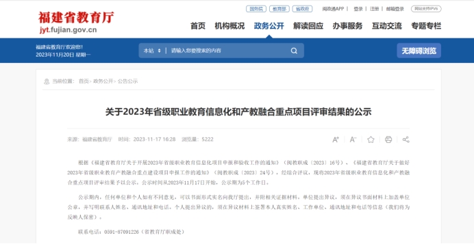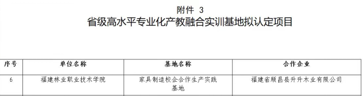 本网讯 11月17日,根据福建省教育厅发布《关于2023年省级职业教育信息化和产教融合重点项目评审结果的公示》,智能制造系与福建省顺昌县升升木业有限公司合作的“家具制造校企合作生产实践基地”获批2023年省级高水平专业化产教融合实训基地;智能制造系无人机应用技术专业教学资源库获批2023年省级职业教育专业教学资源库。