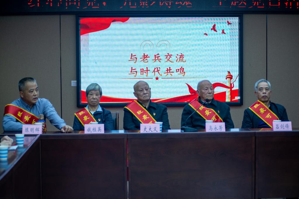 忆军旅生涯,铭入党初心。本次主题党日活动特别邀请五位老兵前辈为青年师生开展一堂别开生面的党课,详细地讲述那段硝烟弥漫的红色岁月。离休干部史大义追忆参加抗美援朝中长津湖战役惊心动魄的峥嵘岁月,回忆部队生活的点点滴滴,感谢党和政府的关怀,感慨当今太平盛世的美好;退休干部马永芳、钱桂英、吕剑锋忆往昔军旅岁月,不变初心本色;参战老兵陈明辉分享老山猫耳洞冷热潮湿、毒虫滋生的战斗条件,唤起老兵们对过往时光的回忆,激发当代青年学子的情感共鸣并开展热烈交流。