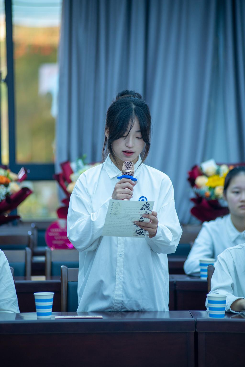 3.信息工程系学生第二党支部薛柯安琪:我很荣幸能够参加此次活动,倾听离休退休老兵的光荣事迹,因为他们为祖国做出的奉献,才换来了我们现在和平安宁的日子。活动还观看了《志愿军:雄兵出击》,这部电影讲述了志愿军战士们在战场上英勇奋战、舍生忘死的故事,展现了他们坚定的信念、顽强的意志和崇高的品质。在这样的艰苦条件下,他们依然顽强地坚持战斗,用自己的生命捍卫着国家的尊严和人民的安宁,这种伟大的精神品质,让我深感敬佩。