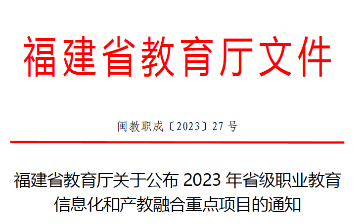 本网讯 12月1日,根据闽教职成〔2023〕27号《福建省教育厅关于公布2023年省级职业教育信息化和产教融合重点项目的通知》,我院共17项确定为2023年省级职业教育重点建设项目。