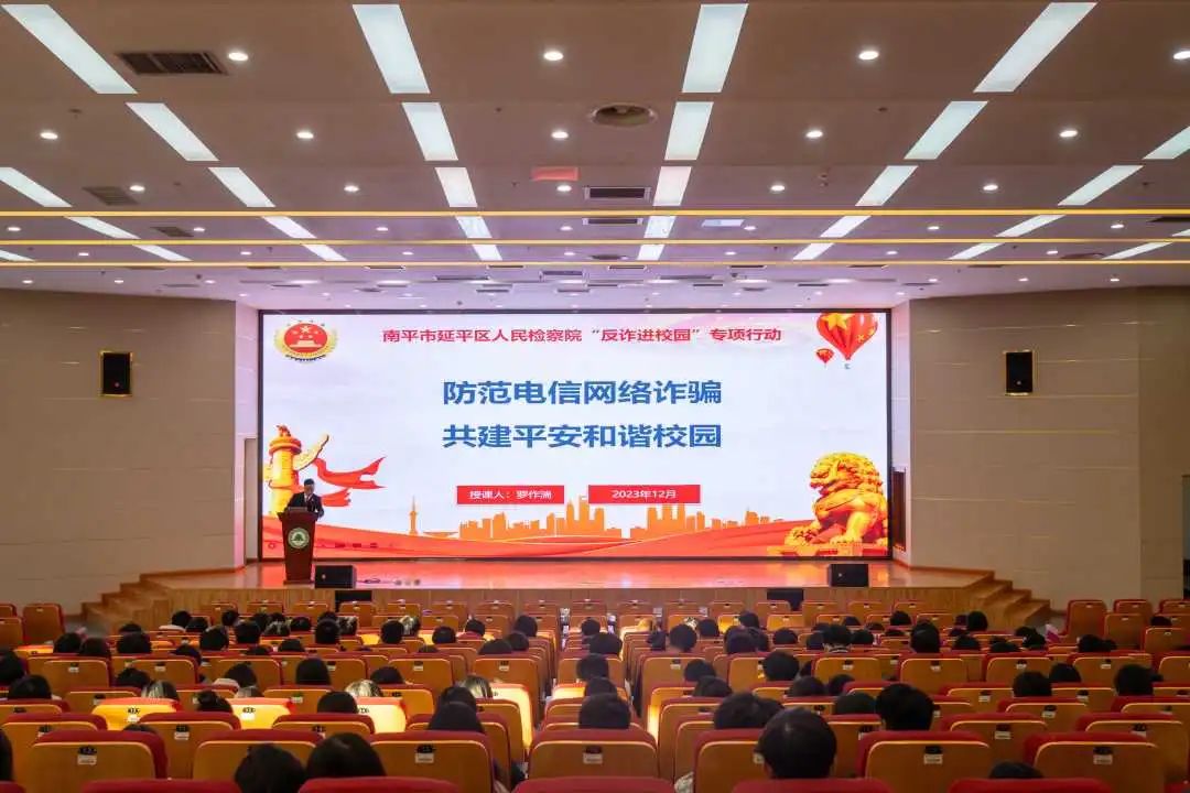 延平区检察院党组书记、检察长林建指出,当前随着互联网经济迅猛发展,智能手机广泛运用,各种诈骗手段层出不穷,给人民群众的生命财产安全造成严重威胁,在校生以及刚步入社会的毕业生成为犯罪团伙拉拢吸收的对象,校园反诈刻不容缓,因此要将启动仪式作为一个新的起点,检校携手共建,共同推进平安校园向纵深发展。林建检察长提出,检校双方有3项工作要抓好:一是要提高政治站位,深化思想认识,切实增强校园反诈工作的紧迫感;二要压实主体责任,防范安全风险,切实耕好校园反诈工作的责任田;三要多方协作联动,共筑平安防线,切实构建校园反诈工作的新格局。