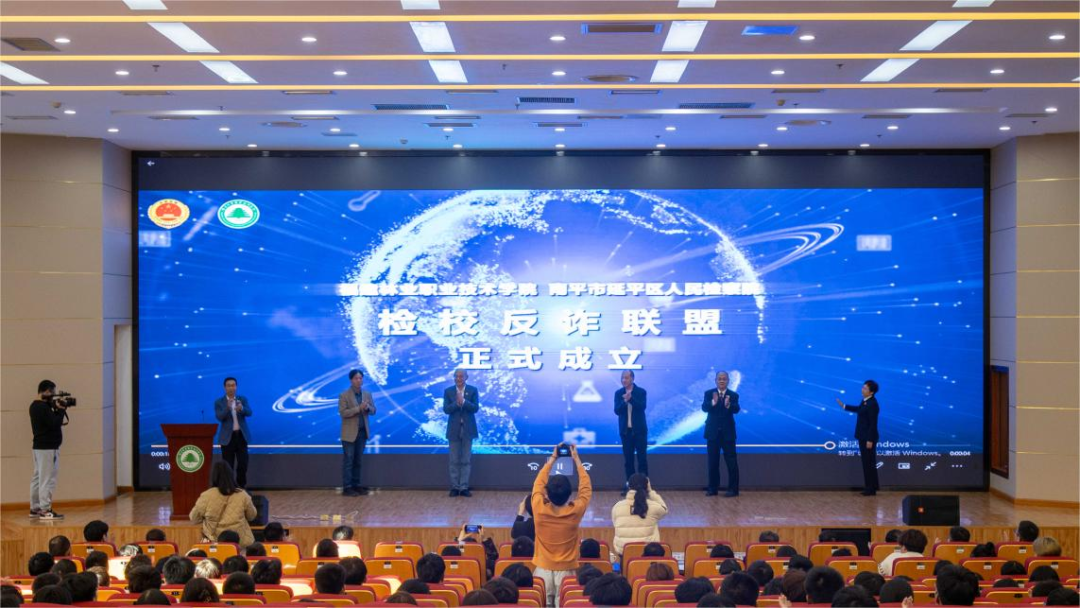 本网讯为深入贯彻党中央关于打击治理电信网络诈骗的决策部署,预防和遏制高校电信网络诈骗案件的发生,净化校园环境,建设“无诈”校园,建设更高水平的平安校园,共同维护广大师生的合法权益,不断提升师生获得感、幸福感、安全感,2023年12月5日下午,福建林业职业技术学院、南平市延平区人民检察院“检校反诈联盟”成立仪式在福建林业职业技术学院江南校区召开。