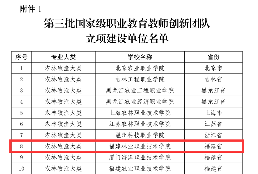 本网讯 近日,教育部公布了第三批国家级职业教育教师创新团队立项(培育)建设单位名单,其中第三批国家级团队立项建设单位 125 个、培育建设单位 22 个。我院申报的“林业技术”教师创新团队顺利通过评选,成功入选第三批国家级职业教育教师创新团队立项建设单位。