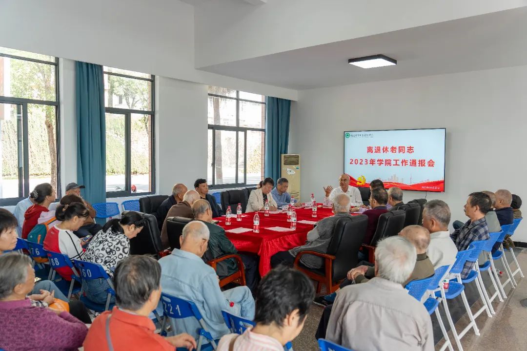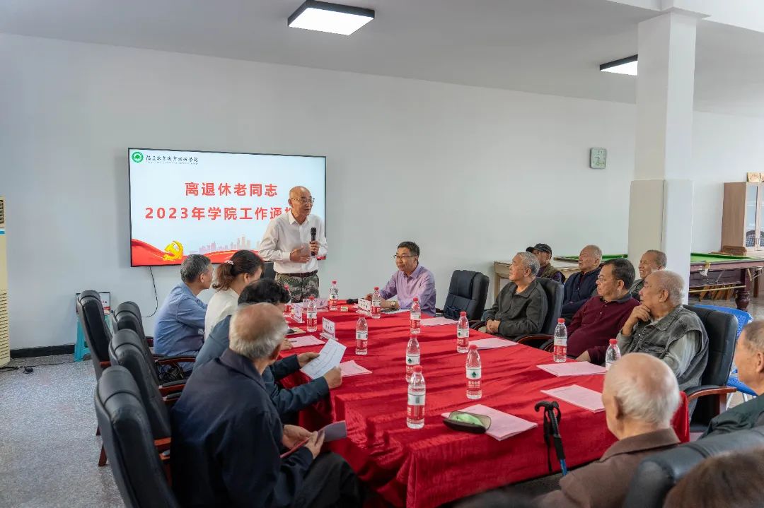 为科学谋划老干工作、解决实际问题、推动高质量发展提供科学依据,揭牌仪式后学院召开了“离退休老同志2023年学院工作通报会”。会上,万泉书记从招生就业、“双高校”建设、校园环境、技能比赛、师资队伍建设、校友工作等方面通报了学院1-10月的工作情况,阐述了学院下一阶段的工作计划。