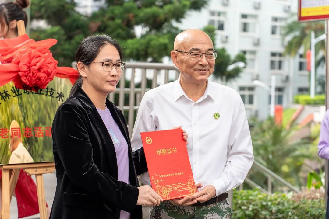 至善为善,化念成行。林迟凤校友捐赠15999元98英寸创维液晶电视一台。万泉书记为林迟凤校友颁发捐赠证书。