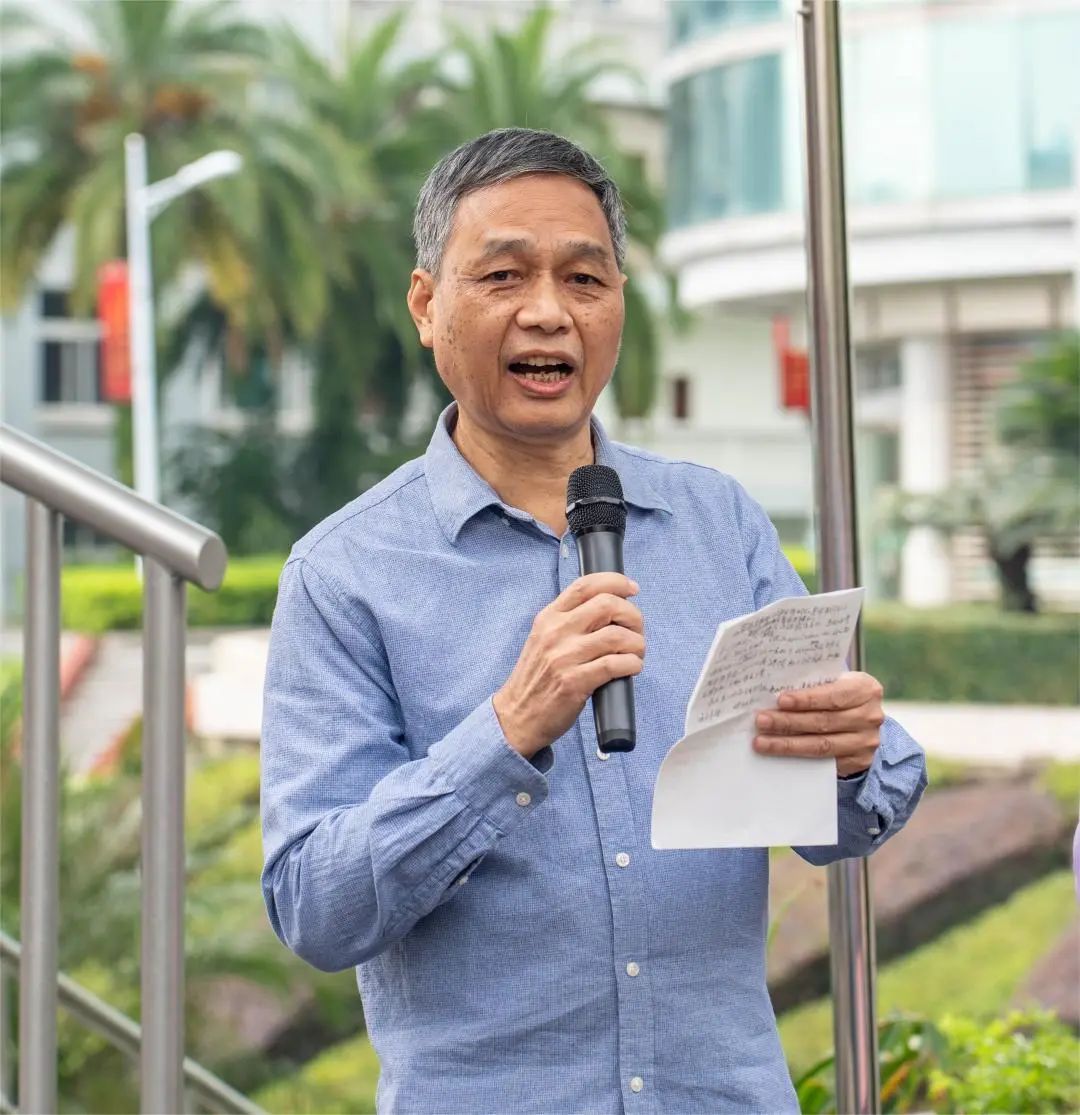 老干党支部吴起明书记代表老同志发言时表示,“学院顺应时代发展形势,回应老同志关切期盼,将中心的搬迁装修项目作为为民办实事的重点项目实施,为老同志的学习生活提供组织支持、社群平台和归属感。退休前有关怀,退休时有仪式,退休后有服务,非常感谢学院对退休老同志的关心与照顾,大家也将积极在学院治理中贡献晚情力量,与学院发展同频共振。”