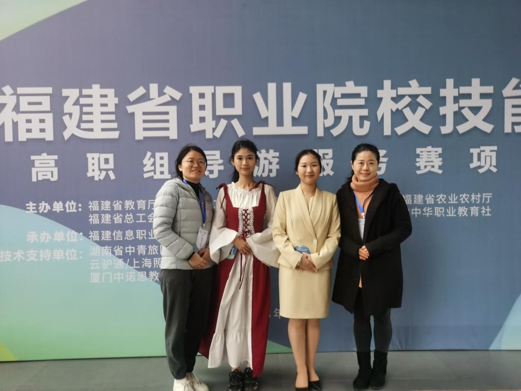 本网讯 12月15日-17日,由福建省教育厅、福建省人力资源和社会保障厅、福建省财政厅等八部门主办,2024年福建省职业院校技能大赛高职组导游服务赛项在福建信息职业技术学院举办,全省32所高职院校派队参赛。林学系旅游管理专业2201班陈雨晴、胡淑晴两位同学参赛,在赛项指导团队旅游管理专业李霞和罗春玉两位教师的悉心指导下,分别荣获一等奖第三名,二等奖第三名的好成绩。