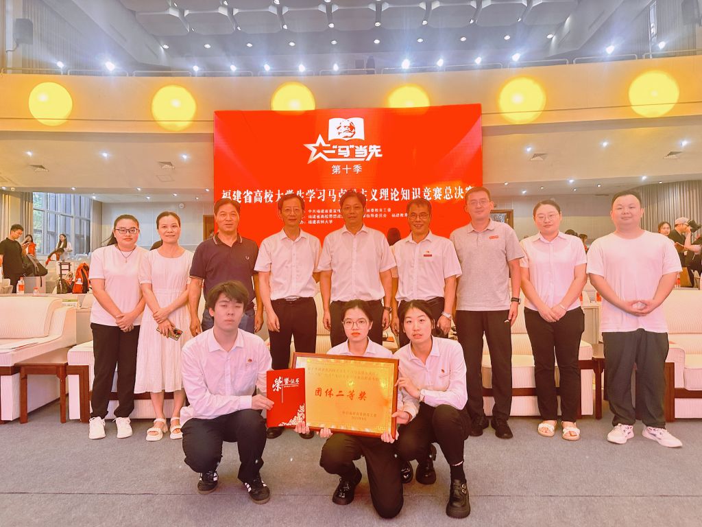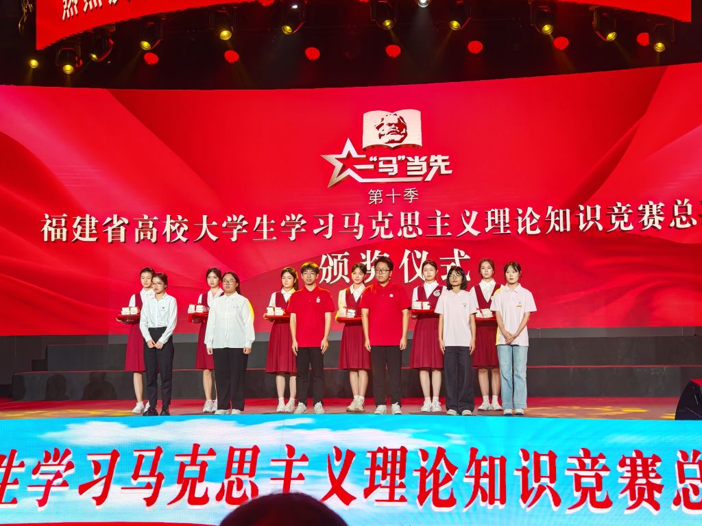 本网讯 9月27日,由福建省委宣传部、福建省委教育工委主办,福建省高校思想政治理论课教学指导委员会、福建教育电视台承办的第十季福建省高校大学生学习马克思主义理论“一‘马’当先”知识竞赛总决赛在福建农林大学举办。福建林业职业技术学院代表队在该项赛事中喜获佳绩,获高职高专组团体二等奖(第三名),信息工程系计算机应用技术2301班的陈湘同学获高职高专组个人二等奖(第三名),林学系食品药品监督管理2302班江心恬、艺术传媒系数字媒体艺术设计2301班郭善杰两名同学获个人优胜奖,实现了学院在该项赛事中的新突破。