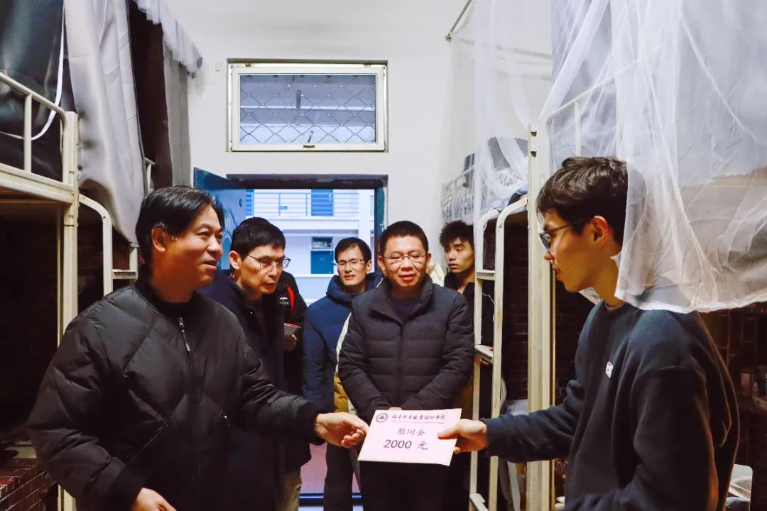 12月20日至21日,院党委书记万泉、院长刘文开、院党委副书记严绍裕、副院长谢金生及学生工作部、信息工程系、智能制造系相关人员一行深入学生宿舍,把学院的慰问和关怀送到受灾学生的心坎上。“现在生活上有什么困难?”“家里受灾情况如何?”在学生宿舍,万泉书记、刘文开院长一行详细了解受灾地区学生的家庭受灾情况、家庭经济现状和在校学习情况,鼓励受灾学生要树立信心、战胜困难,安心在校学习,不负青春韶华,继续努力奋斗,将来更好地建设家乡、回馈社会。