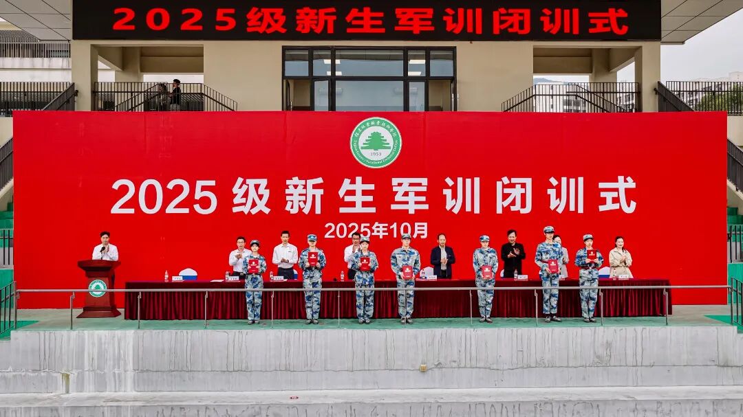 本网讯 10月26日至27日,福建林业职业技术学院天麟、江南两校区先后举行2025级新生军训闭训式。学院党委书记陈建辉,学院党委副书记、院长刘文开,学院党委委员、纪委书记詹其仙,学院党委委员、副院长黄晖,学院党委委员、副院长李肇锋,学院党委委员、组织(统战)部部长李霞,学院党委委员、宣传部部长、马克思主义学院院长邹小燕,学院相关部门负责人,各系党总支书记、系主任、党总支副书记、学生科长和2025级新生辅导员与全体参训学生共同为为期半个月的军训生活画上圆满句号。闭训式均由学院党委副书记严绍裕主持。