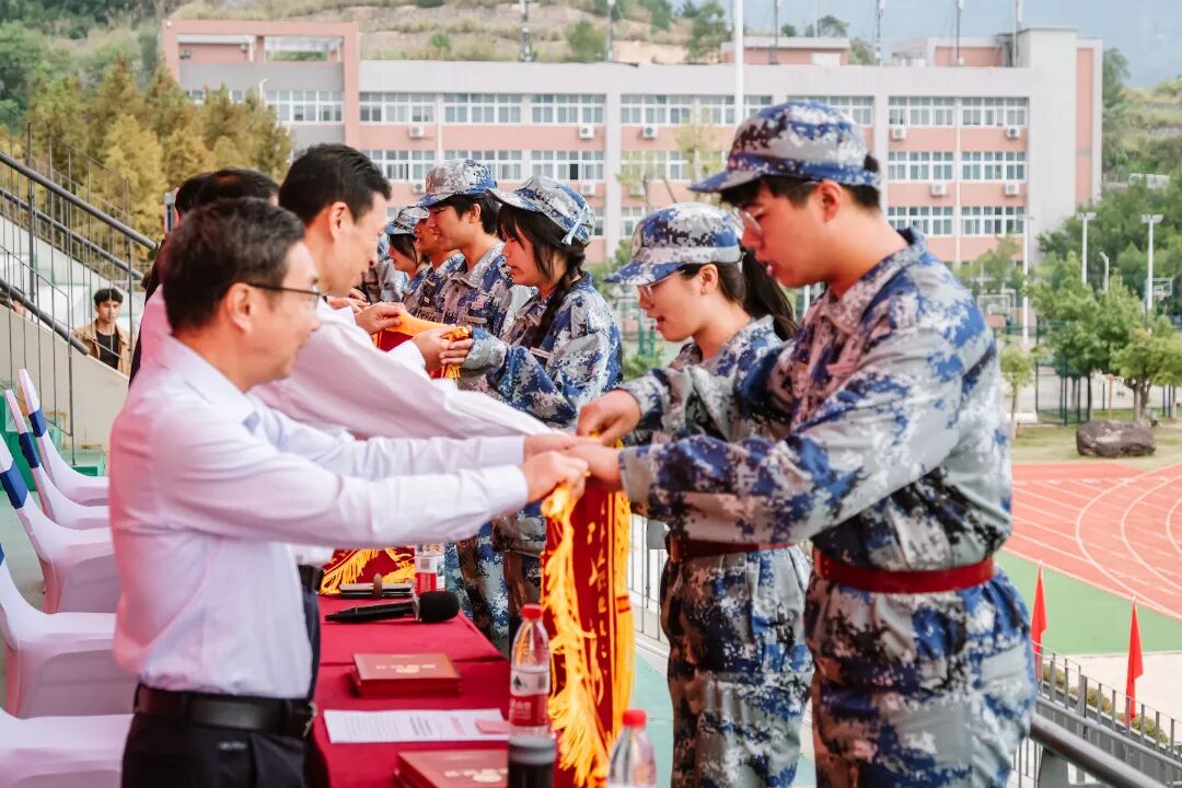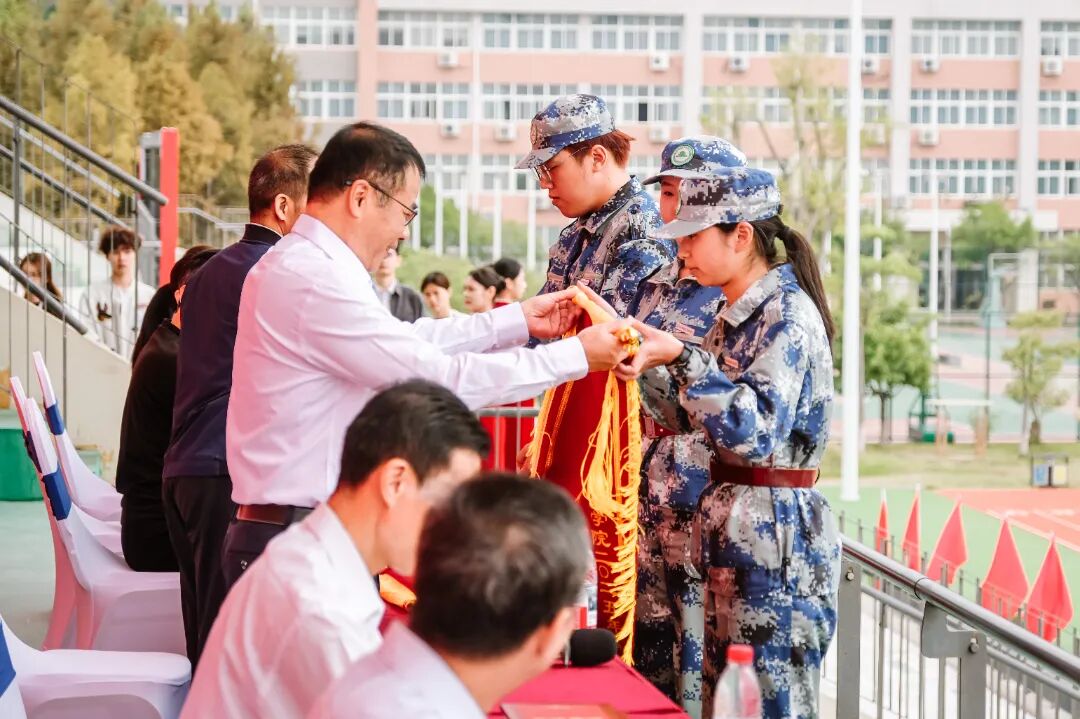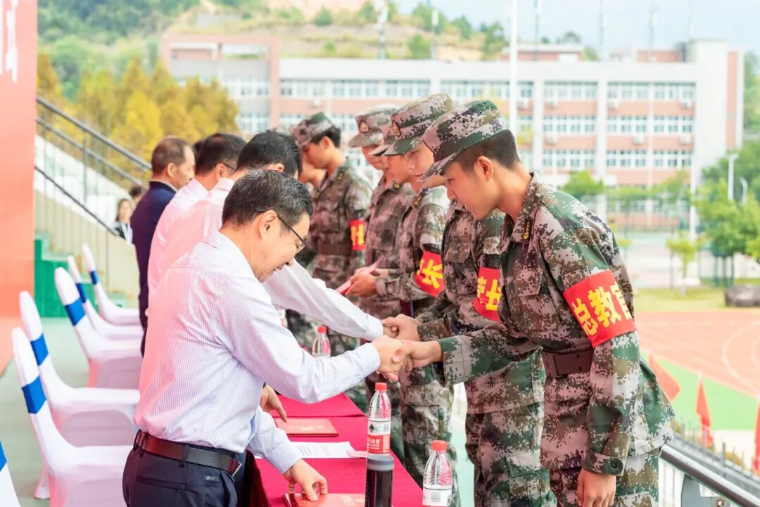 李肇锋副院长宣读了关于表彰2025级学生军训优秀班级、军歌班班唱比赛获奖班级、优秀学员、内务标兵宿舍和优秀教官的决定。与会领导依次为获奖集体和个人代表颁奖,勉励他们珍惜荣誉,再接再厉。