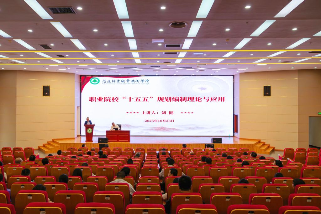本网讯 为科学谋划学院“十五五”发展蓝图,准确把握职业教育发展的新形势、新要求,提升规划编制工作的理论水平与实践能力,2025年10月24日,学院特邀福建省政协第十三届委员会委员、教科卫体委员会副主任刘健教授莅校作题为《职业院校“十五五”规划编制理论与应用》的专题辅导讲座。学院党委副书记、院长刘文开主持讲座。学院全体副科级以上干部到场聆听。