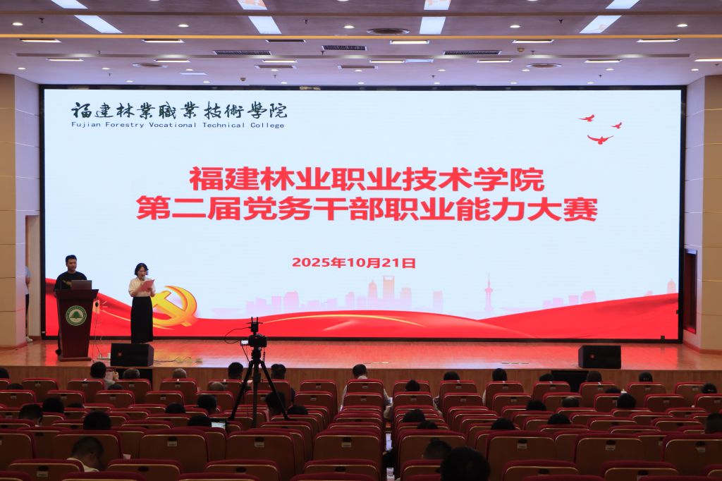 本网讯 福建林业职业技术学院第二届党务干部职业能力大赛自9月启动以来,共有46名基层党务工作者积极报名参赛。比赛分别设置“党务知识竞赛”“主题党日策划”“微党课”三个赛项。10月21日,比赛在江南校区学术报告厅圆满收官,并举行颁奖仪式。经激烈角逐,林学系党总支荣获大赛团体一等奖,建筑工程系党总支、园林系党总支荣获大赛团体二等奖,交通工程系党总支、智能制造系党总支、经济管理系党总支荣获大赛团体三等奖,信息工程系党总支、艺术传媒系党总支荣获大赛团体优秀奖。12名选手分别获得个人综合奖一、二、三等奖。大赛分别设置三个赛项的单项一、二、三等奖。