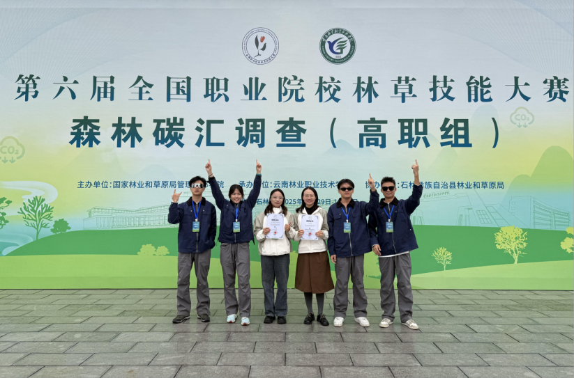 本网讯 2025年10月30日至11月1日,第六届全国职业院校林草技能大赛森林碳汇调查(高职组)赛项在云南昆明举办。我院选派林学系李欣蓝、葛绍涵、林泽炜、管政辉4名同学组成代表队参赛。经过激烈角逐,我院代表队凭借扎实的专业技能和稳定的现场发挥,以总分第一的优异成绩荣获一等奖。指导教师陈芳、魏黎灵获评“优秀指导教师”。