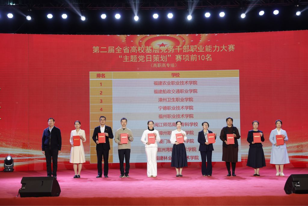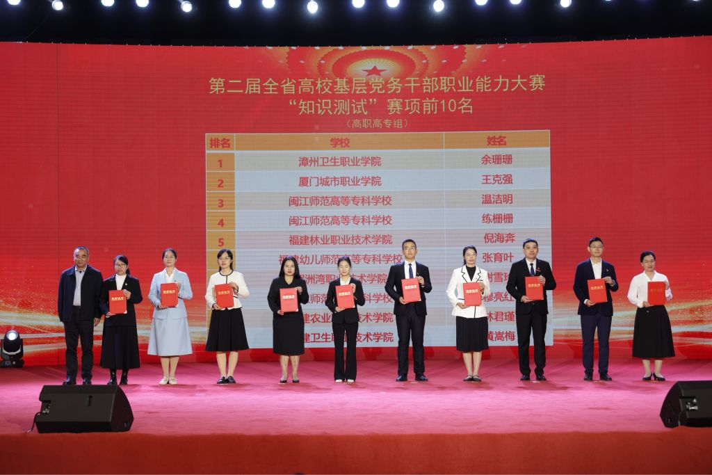 本网讯 11月28日,由福建省委教育工委主办、福建师范大学承办的福建省第二届高校基层党务干部职业能力大赛圆满落下帷幕。福建林业职业技术学院代表队在全省43所高职高专院校、129名选手的激烈角逐中脱颖而出,在该项赛事中喜获佳绩,获高职高专组团体二等奖,同时在“主题党日策划”“知识测试”“微党课”赛项中揽获3个单项奖,邱雯获高职高专组“微党课”赛项第3名,倪海奔获高职高专组“知识测试”赛项第5名,黄雪媛等主题党日策划作品获高职高专组“主题党日活动策划”赛项第10名,“谈心谈话”赛项代表队总分名列第3,实现了学院在该项赛事中的新突破。