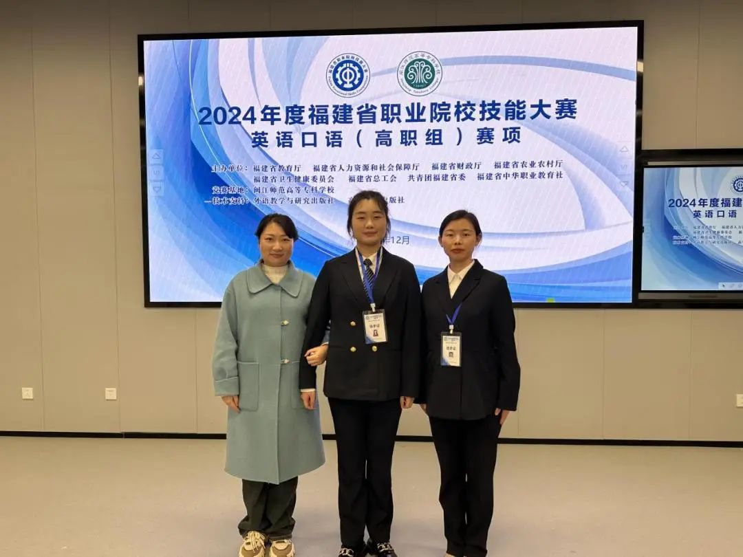 本网讯2023年12月29日至31日,由福建省教育厅、福建省人力资源和社会保障厅、福建省财政厅等八大部门主办的2024年福建省职业院校技能大赛(高职组)英语口语赛项在闽江师范高等专科学校举办。由艺术传媒系教师赵义莲和学生林欣瑶组成的参赛团队喜获英语口语(专业组)一等奖!