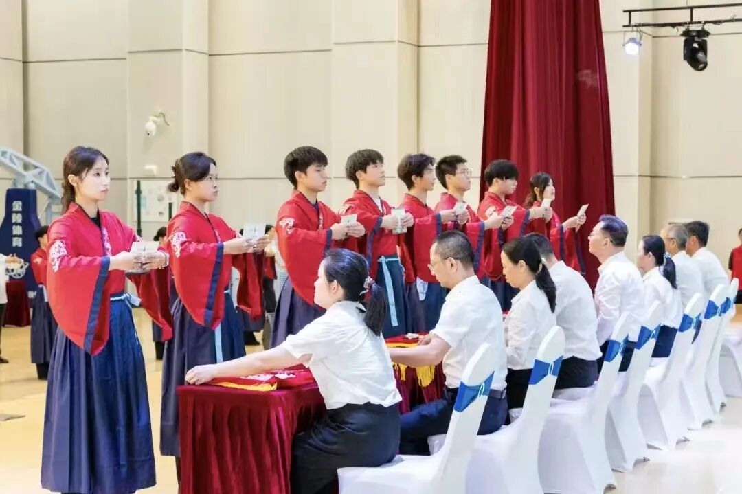 为让朱子文化以更鲜活的形式浸润校园,我院将朱子敬师礼作为校园文化建设与美育实践的重要载体,在新生入学、教师节等重要节点常态化开展,至今已连续举办10届,累计参与新生超2.5万人。每年教师节前夕,新生身着传统服饰,在礼仪导师的指引下,依次完成“正衣冠”“行拜师礼”“敬茶拜师帖”“诵经典文”等环节,以庄重的仪式表达对师长的敬意。2025级新生李同学在参与活动后表示:“躬身行礼的瞬间,真切感受到传统礼仪的庄重之美,也更加明白尊师重道的意义。”