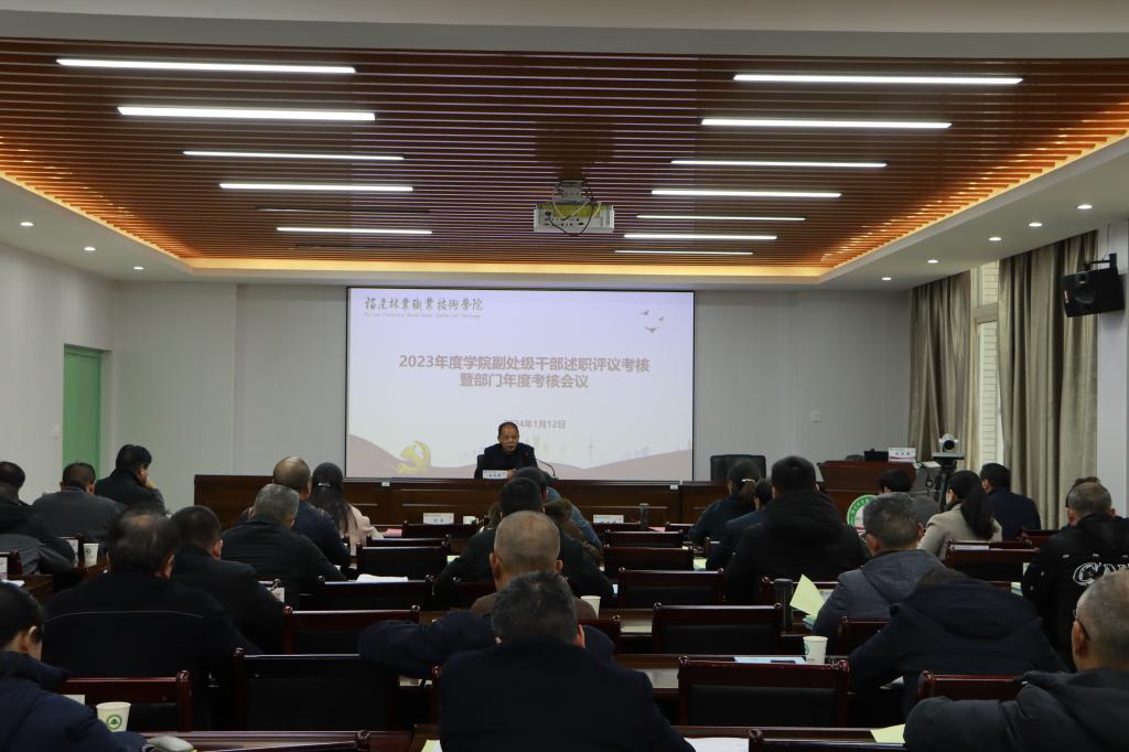 本网讯 为深入学习贯彻党的二十大精神,坚持和加强党的全面领导,进一步做好干部考核评价工作及部门年度考核工作,1月12日,学院召开2023年副处级干部述职评议考核暨部门年度考核会。院领导万泉、刘文开、严绍裕、谢金生、黄晖、李肇锋出席会议。全体中层干部、民主党派及无党派人士代表、工会代表参加会议。会议由院党委副书记严绍裕主持。