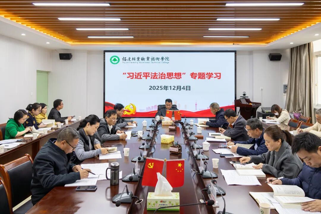 本网讯 12月4日下午,院党委书记陈建辉在江南校区行政楼五楼会议室主持召开2025年第12次党委理论学习中心组学习(扩大)会,会议开展党委理论学习中心组“第一议题”学习和“思想政治工作”“习近平法治思想”专题学习,党委理论学习中心组成员及各系党总支书记、机关处室党支部书记参加学习。