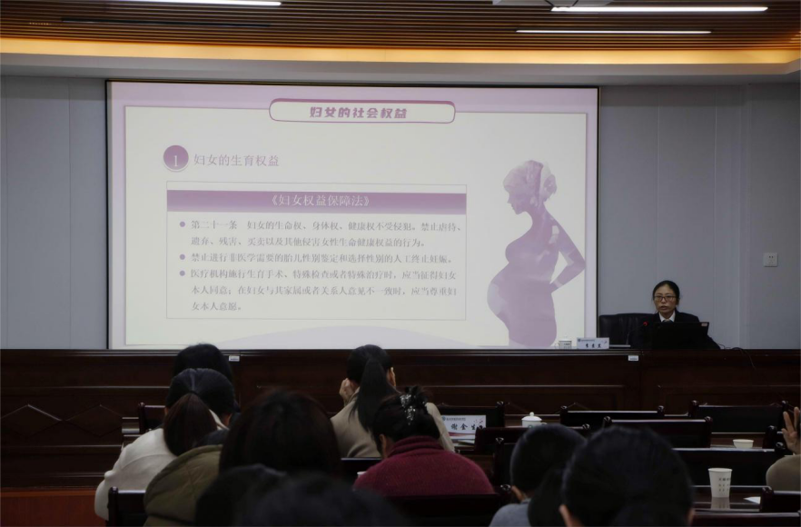 在“三八”国际劳动妇女节来临之际,李法官围绕新修订《妇女权益保障法》从妇女的社会权益、人身权利等多个维权领域作了细致解读,并通过大量鲜活的案例讲解妇女的具体权益和保护措施,进一步增强了女教工们依法维护权益的意识。