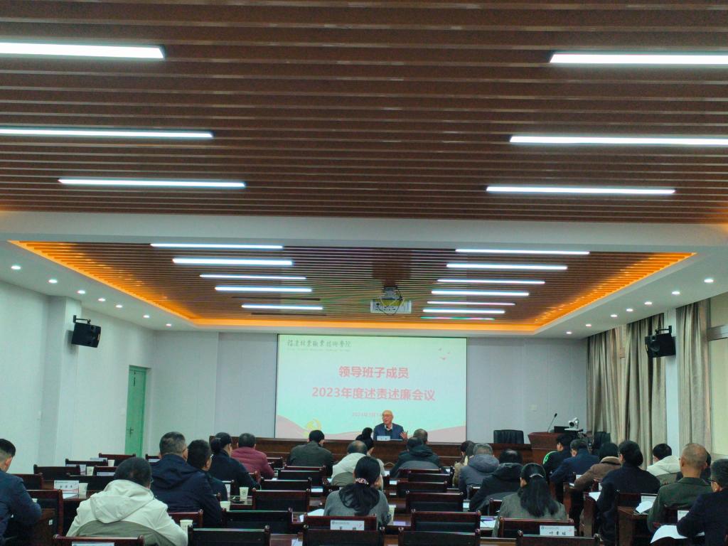本网讯 3月14日上午,学院在江南校区第四会议室召开2023年度学院领导班子成员述责述廉工作会议。学院党委委员、纪委委员、全体副处级干部参加会议。会议由院党委书记万泉主持。
