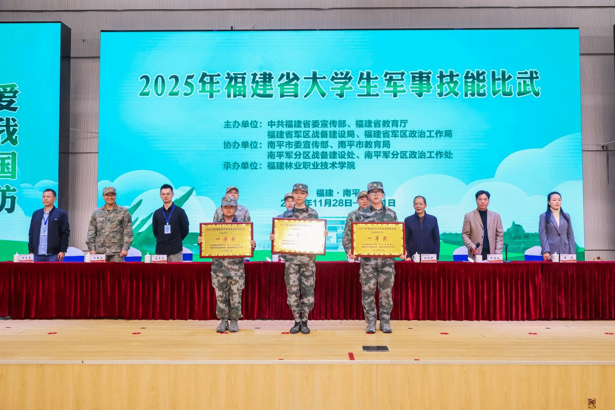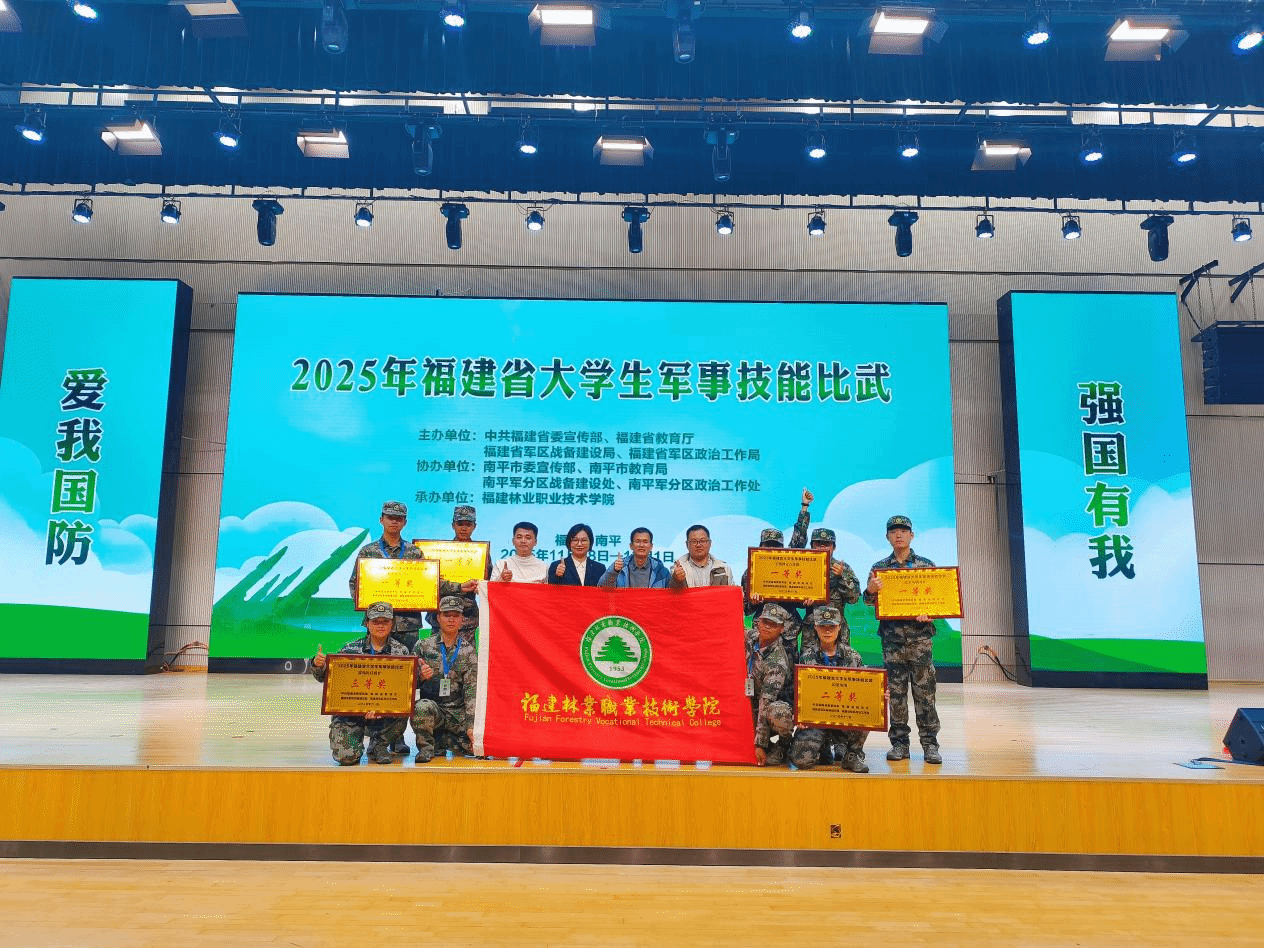 本网讯 2025年11月28日至12月1日,2025年福建省大学生军事技能比武活动在我院圆满落幕。作为本次赛事的承办方,福建林业职业技术学院代表队凭借过硬的军事素养、顽强的拼搏精神,在多个赛项中脱颖而出,不仅以总分第一的优异成绩斩获团体一等奖,更在单项比拼中勇夺多项大奖,尽显天麟学子风采!