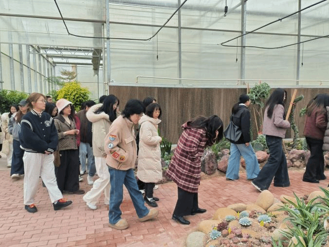 本网讯 为深入学习领会党的二十届四中全会精神,落实全会关于加强劳动教育、建设高水平教师队伍的部署要求,2025年12月17日,由园林系承办的“园艺体验+实践育人”主题辅导员读书会在福建省生态景观科普基地顺利举办。院学生工作部副部长陈红英、学生教育管理科科长温全军,各系学生科科长及全院专职辅导员齐聚园林系,以园艺为媒、劳动为桥,在沉浸式研学与实践操作中探索育人新路径,为更好地开展实践育人工作蓄力赋能。