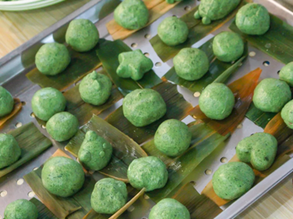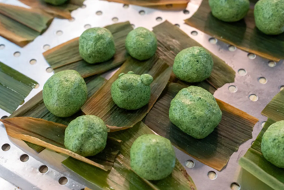 伴随着脑洞大开的想象力,原本圆嘟嘟的青团,摇身一变成了各种各样的形状。有笑脸,有星星,有熊脸……一个个都生动有趣,充满活力。