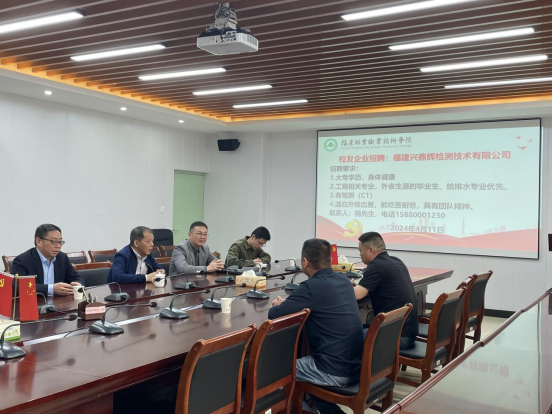 11日下午,福建兴鼎辉检测技术有限公司在建筑工程系召开专场招聘会,杨其文总经理分别就企业概况、薪酬结构、员工福利、晋升发展、招聘需求和应聘流程等方面跟同学进行了深入的交流。