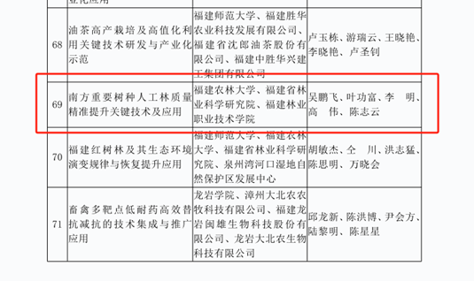 本网讯 4月12日,福建省人民政府发布《关于2022年度省科学技术奖励的决定》(闽政文〔2024〕126号),公布获得2022年度福建省科技奖励的成果名单,我院高伟老师参与的《南方重要树种人工林质量精准提升关键技术及应用》获得福建省科技进步三等奖。高伟老师为该成果第四完成人,福建林业职业技术学院为第三完成单位。
