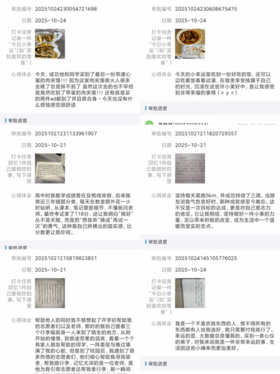 在长效机制建设上,心理电影赏析、心理打卡等常态化活动持续开展,通过集体参与和朋辈激励,促进学生自我觉察与情绪管理能力的提升,实现心理健康教育从个体关怀到集体滋养的延伸。