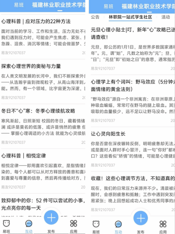 学院积极推进易班校本化建设,拓展实体工作空间,运用心理咨询预约、校园答题等校本化应用,显著提升学生管理服务的信息化与智能化水平。2025年,学院易班活跃度位居全国高校前列,平台深度融合已成为提升心理育人及学生管理工作效能的重要引擎。