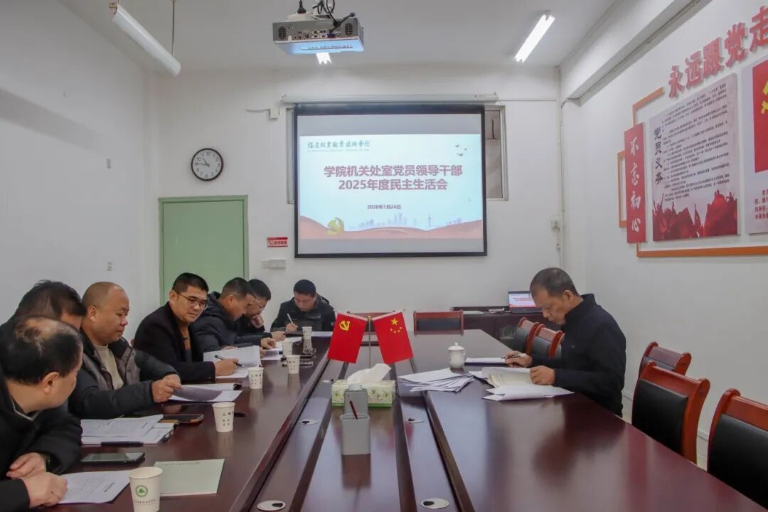 本网讯 1月24日,学院召开2025年度机关处室党员领导干部民主生活会。本次民主生活会分两个小组进行,会议分别由院党委书记陈建辉和院党委副书记、院长刘文开主持。