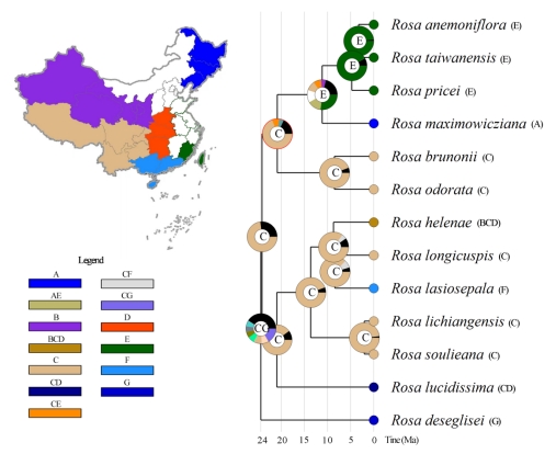 由于银粉蔷薇缺乏相关的分子生物学和遗传研究,这种濒危植物尚未得到有效保护。为了给其保护提供更科学的依据,利用下一代高通量测序技术获得了高质量的银粉蔷薇叶绿体基因组序列。随后,通过比较基因组分析,揭示了银粉蔷薇与近缘非濒危植物叶绿体基因组的差异,以推测其濒危风险是否由叶绿体基因组的变异引起。此外,系统发育分析阐明了银粉蔷薇的进化历史,而生物地理分析则明确了其祖先的分布区域。研究结果表明,银粉蔷薇与其近缘植物的叶绿体基因组差异较小,表明其濒危风险不是由叶绿体基因组变异引起的。然而,高度多态性的atpH-atpI区可作为区分银粉蔷薇与其近缘植物的DNA条形码。最后,结果证实银粉蔷薇属于蔷薇科蔷薇属合柱组,银粉蔷薇及其近缘植物可能起源于中国福建和台湾地区,并在大约271700年前开始分化。研究结果为未来的生物多样性保护和遗传资源管理提供了重要的参考。