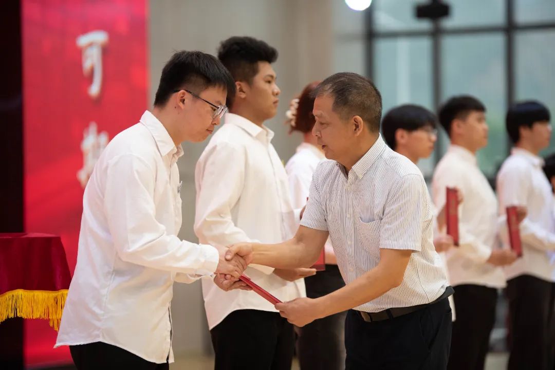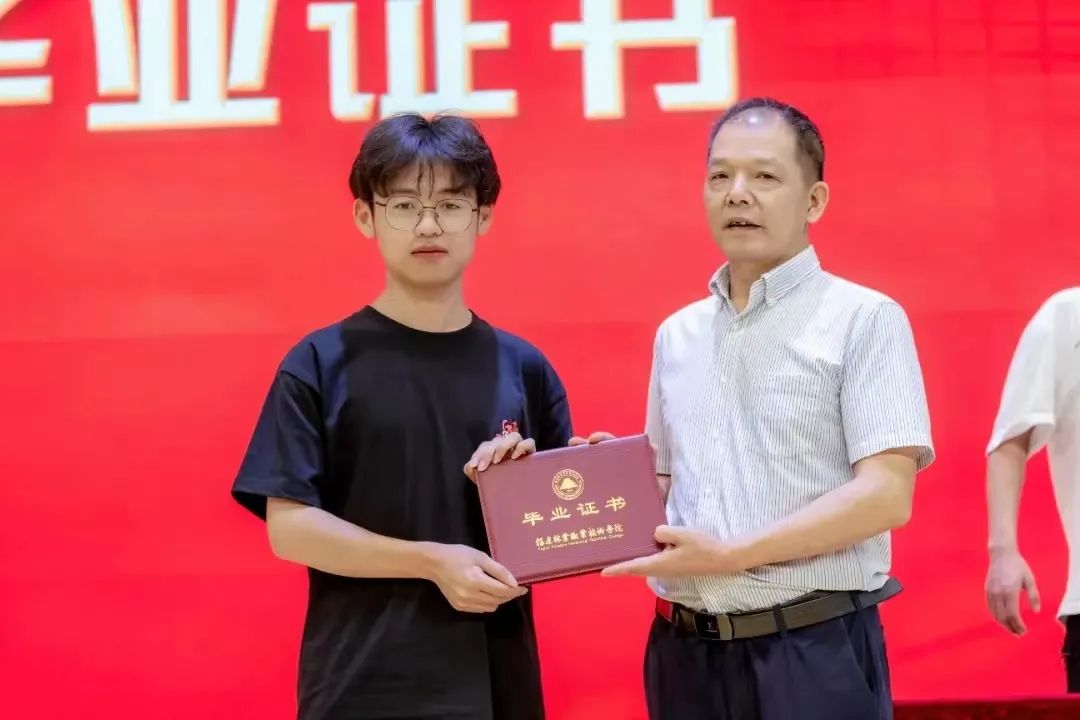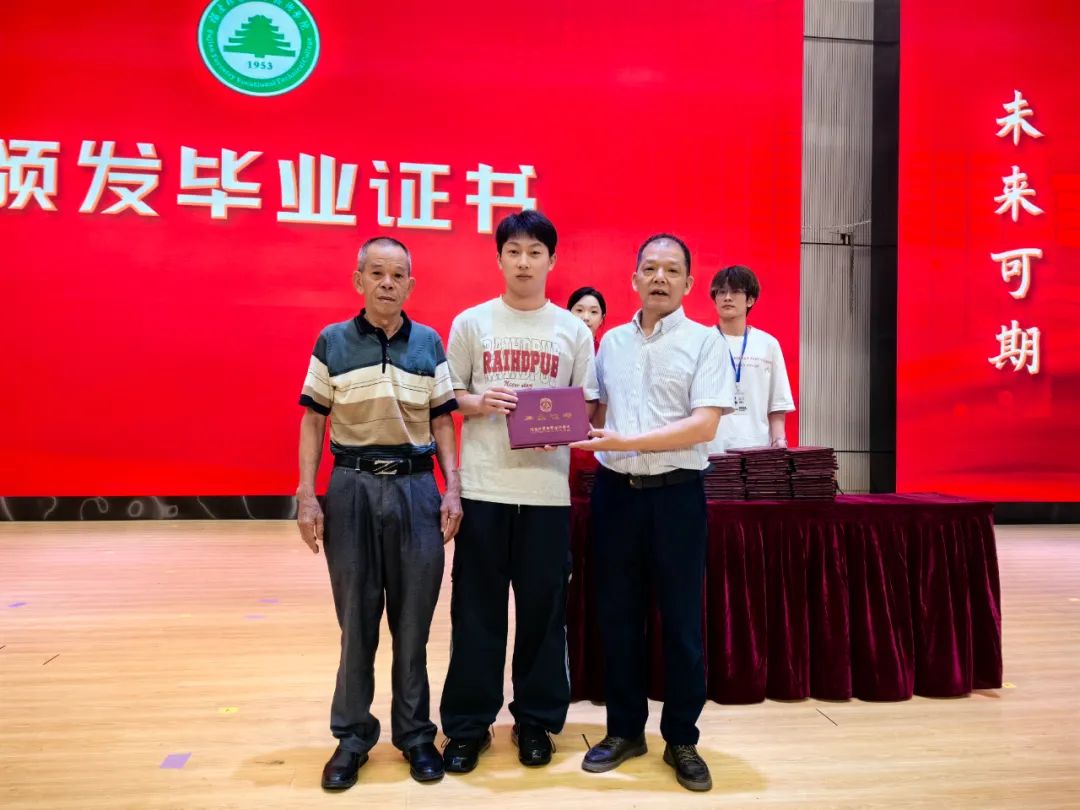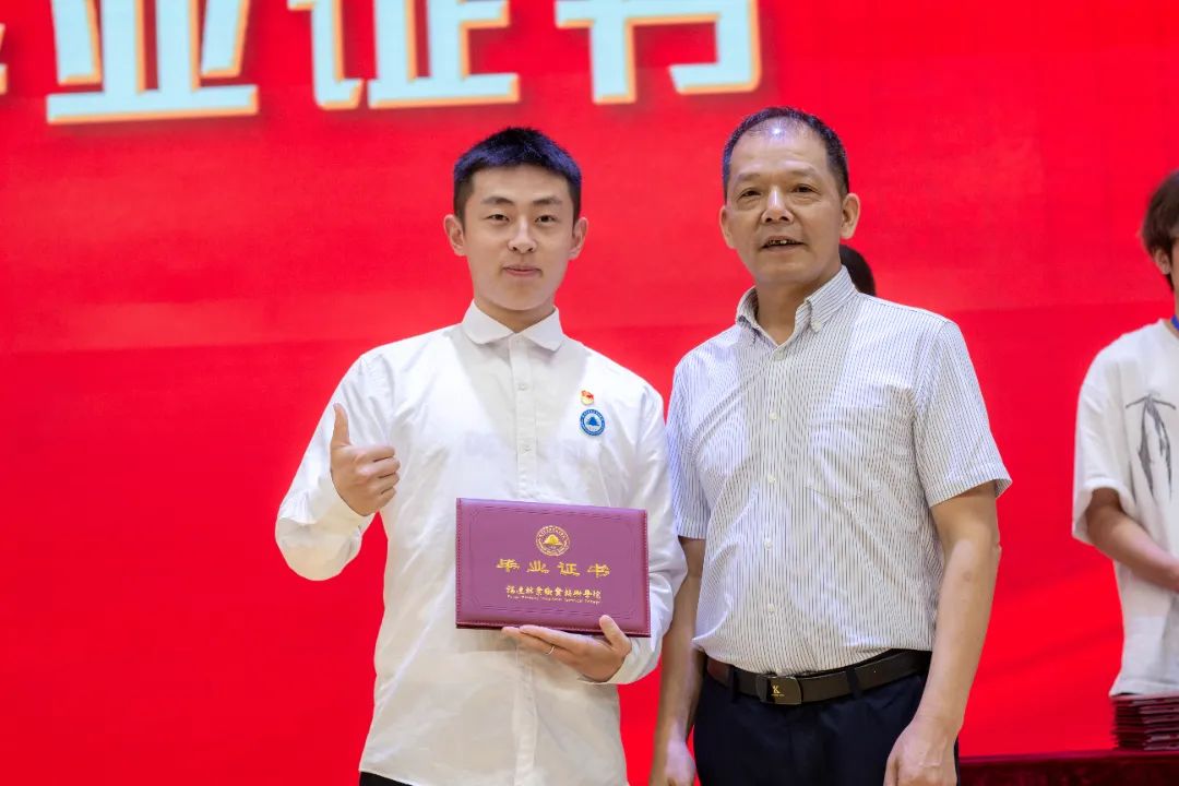 随后,陈建辉书记和刘文开院长为全体毕业生颁发毕业证书。伴随着悠扬的歌声,毕业生们意气风发地走上主席台,大家手持毕业证书与老师握手、合影留念,为自己三年大学生活划上圆满的句号。