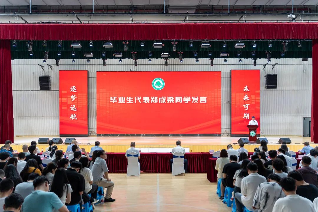 信息工程系计算机应用技术2101班郑成梁同学作为毕业生代表在典礼上发言,他表示,作为新时代的青年学子,他将带着母校的期望、老师们的教诲、朋友们的鼓励,砥砺前行,做怀揣梦想脚踏实地的人、做拥有智慧富有激情的人,做德才兼备敢挑重任的人,以青春之名,赴时代之约。