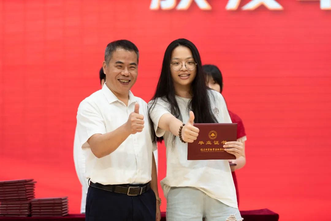 学院党委书记陈建辉,学院党委副书记、院长刘文开,延平区夏道镇人民政府镇长叶正祥,院党委副书记严绍裕,学院党委委员、副院长黄晖,学院党委委员、副院长李肇锋,延平区夏道派出所所长吴哲文,延平区夏道镇小鸠村党支部书记、村委会主任李佳佳,学院党委委员、组织部(统战部)部长李霞,学院党委委员、宣传部部长邹小燕出席典礼。学院相关职能部门负责人,各系党总支书记、主任、党总支副书记、副主任、学生科长、毕业班辅导员和返校的2024届毕业生共同参加典礼,见证属于6953位毕业生的幸福时刻。
