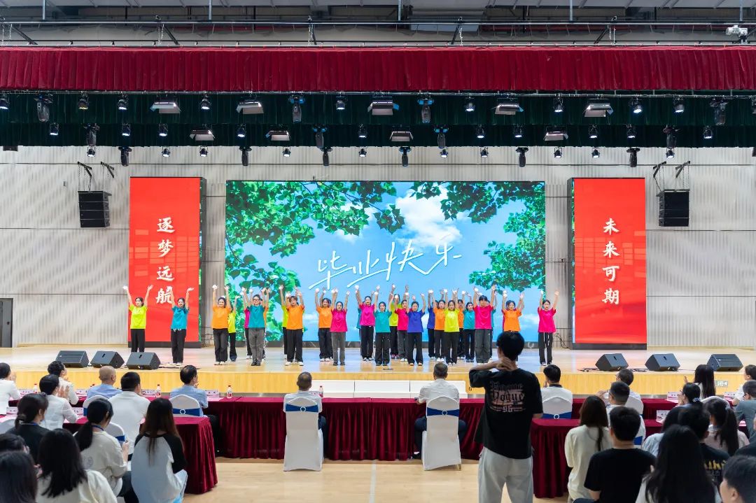 毕业典礼开场前,现场师生一起观看了暖场节目表演。天麟艺术团师生共同演绎的歌曲《天麟之歌》《骑着沙漠骆驼的天竺少女牵着白龙马问路在何方》、音乐小品《谁让你毕业了》、舞蹈《凤凰花开的路口》,点燃了现场的青春与活力,点燃2024届毕业生对未来的向往。