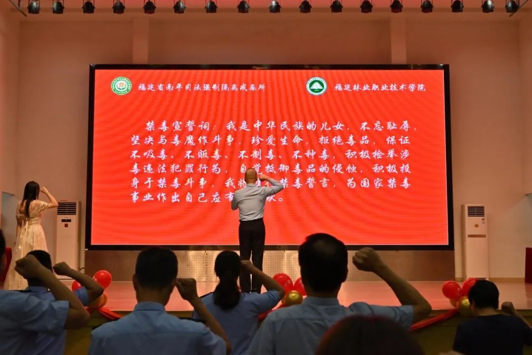 接着,由南平司法强制隔离戒毒所二级警长庄芝翔带领全体人员宣读禁毒宣誓词。铮铮誓言,表达了全体人员坚定的禁毒决心。