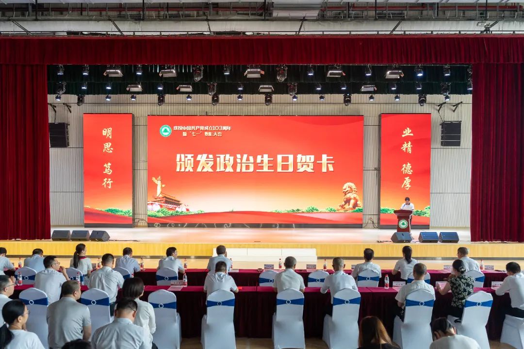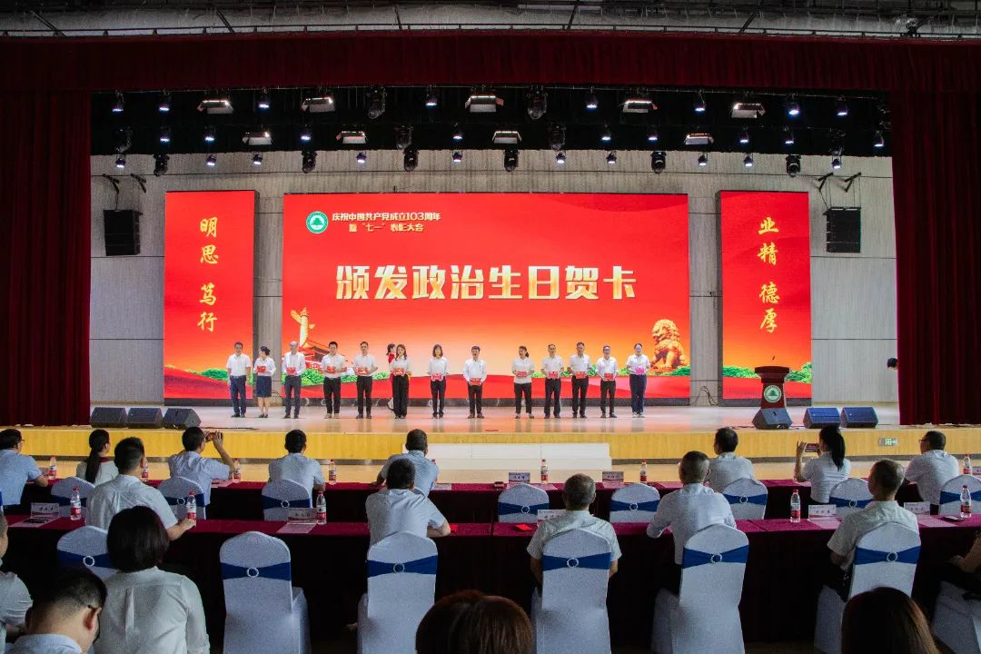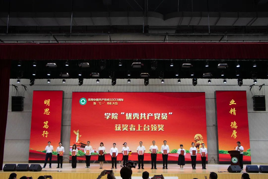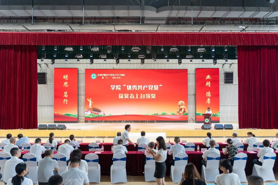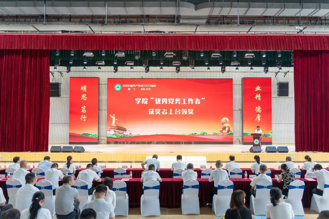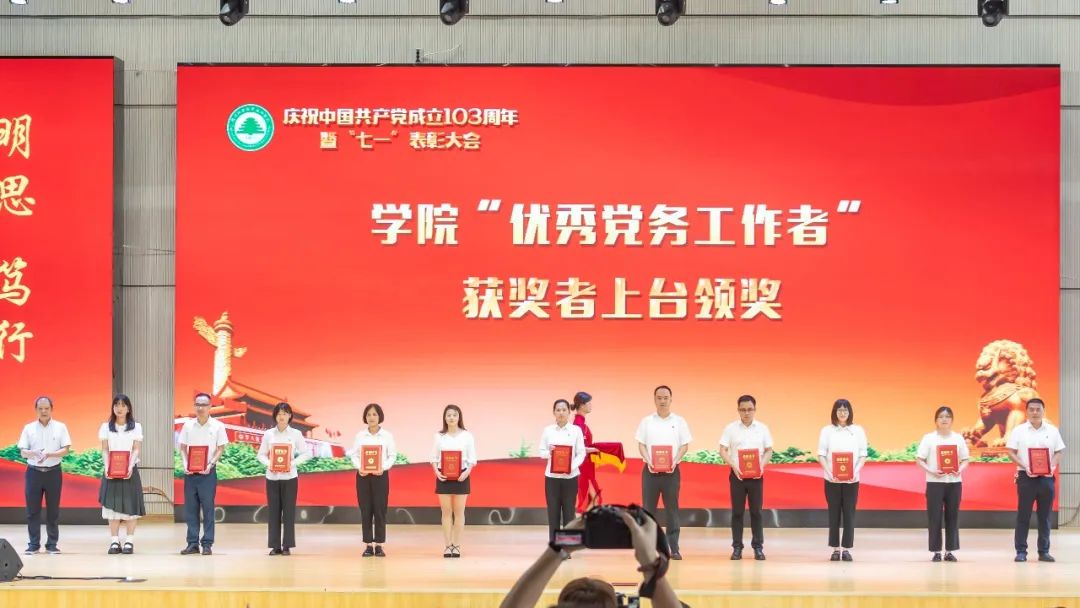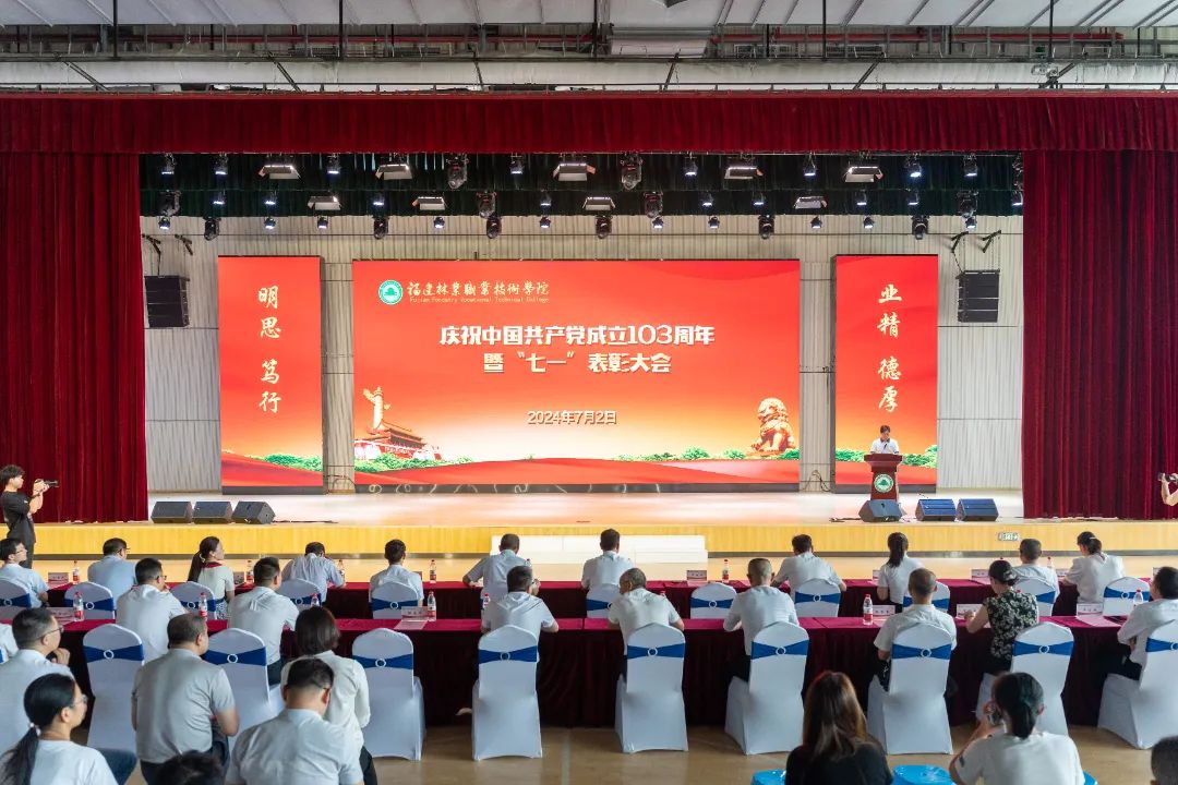 本网讯 7月2日下午,福建林业职业技术学院庆祝中国共产党成立103周年暨“七一”表彰大会在江南校区体育馆隆重举行。大会为7月加入党组织的党员颁发政治生日贺卡,表彰了党支部工作“立项活动”优秀成果、“党员好故事”“书记好党课”“支部好案例”获奖奖项和一批优秀共产党员、优秀党务工作者、先进基层党组织。