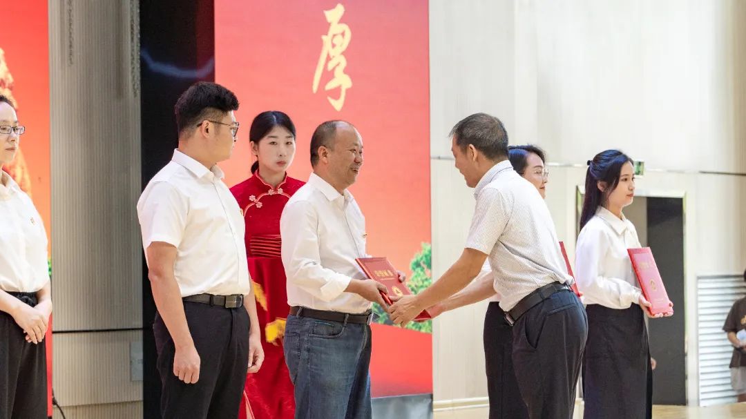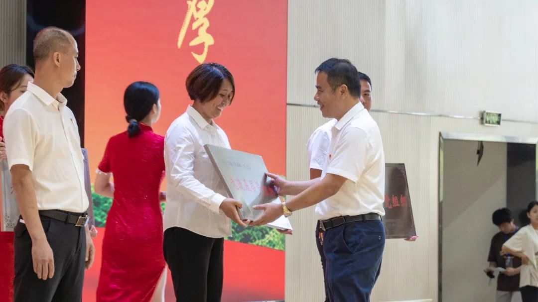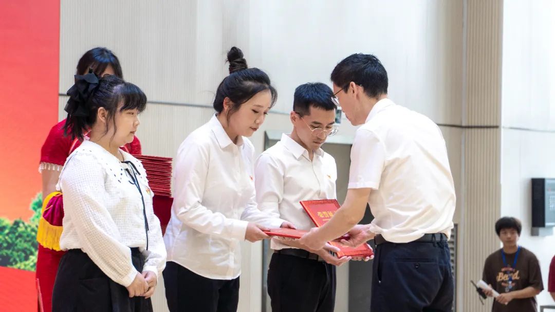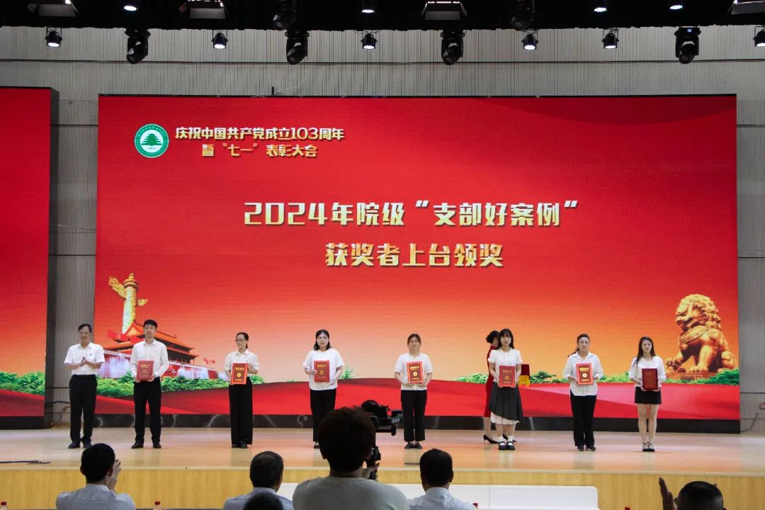 院党委书记陈建辉为获得先进基层党组织的党支部代表颁奖。
