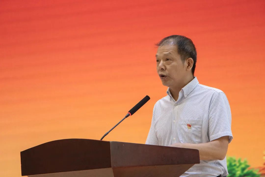 陈建辉书记在讲话中深情回顾了党领导下的学院发展历程,他强调:学院各级党组织始终坚持以习近平新时代中国特色社会主义思想为指引,切实发挥党建引领作用,不断推动党的政治优势、组织优势和密切联系群众优势转化为学院高质量跨越式发展的强大动力,学院各项事业得到了快速发展。展望未来,陈书记对全院党员干部和教职工提出三点希望:一是学纪知纪明纪守纪,以高质量开展党纪学习教育为契机,为学院高质量发展提供纪律保障。二是加强党的领导,以党建工作为引领,为学院高质量发展提供强大“引擎”。三是加强基层组织建设,筑牢战斗堡垒,为学院高质量发展夯实根基。全院党员干部和教职工要以更加奋发有为的精神状态、更加积极主动的工作态度、更加求真务实的工作作风,坚决扛起新时代赋予职业教育的责任和使命,抢抓机遇,敢作善为,奋力开创学院事业高质量发展新局面,为新中国成立75周年添彩献礼!