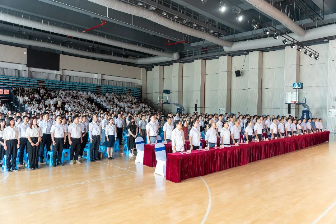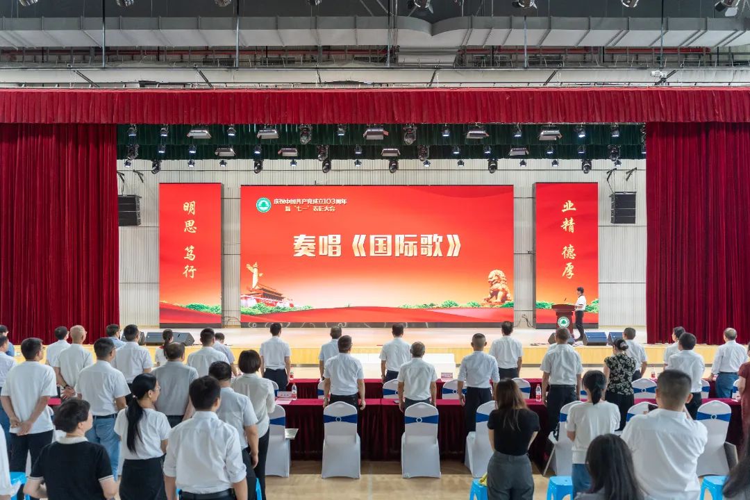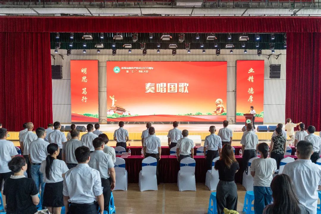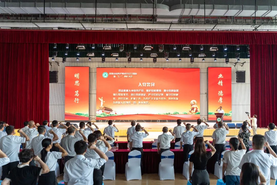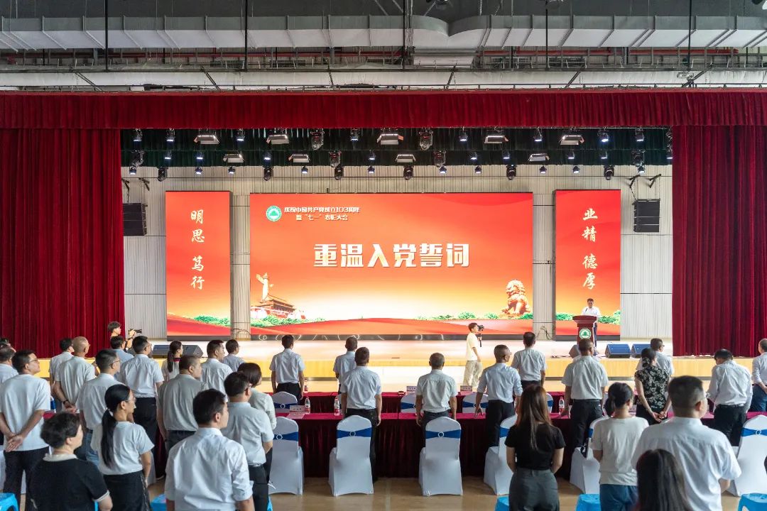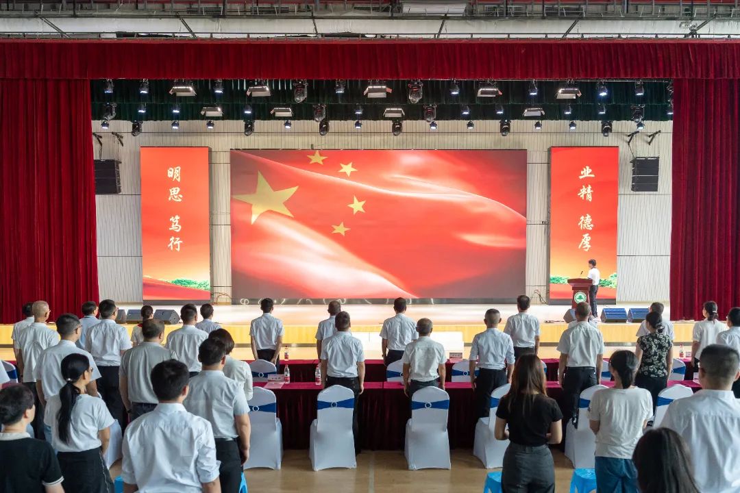 庄严的《中华人民共和国国歌》响起,参会人员庄重肃立,高唱国歌。在党委书记陈建辉的带领下,与会全体人员面向党旗,重温入党誓词。铮铮誓言铿锵有力,庄严承诺掷地有声,表达了坚定的理想信念和崇高的精神追求。