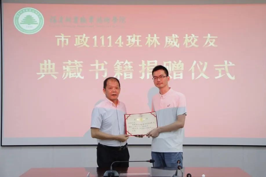 本网讯 2024年7月2日下午,我院举行市政工程1114班校友林威向母校捐赠典藏书籍仪式,仪式由副院长李肇锋主持,院长刘文开出席。