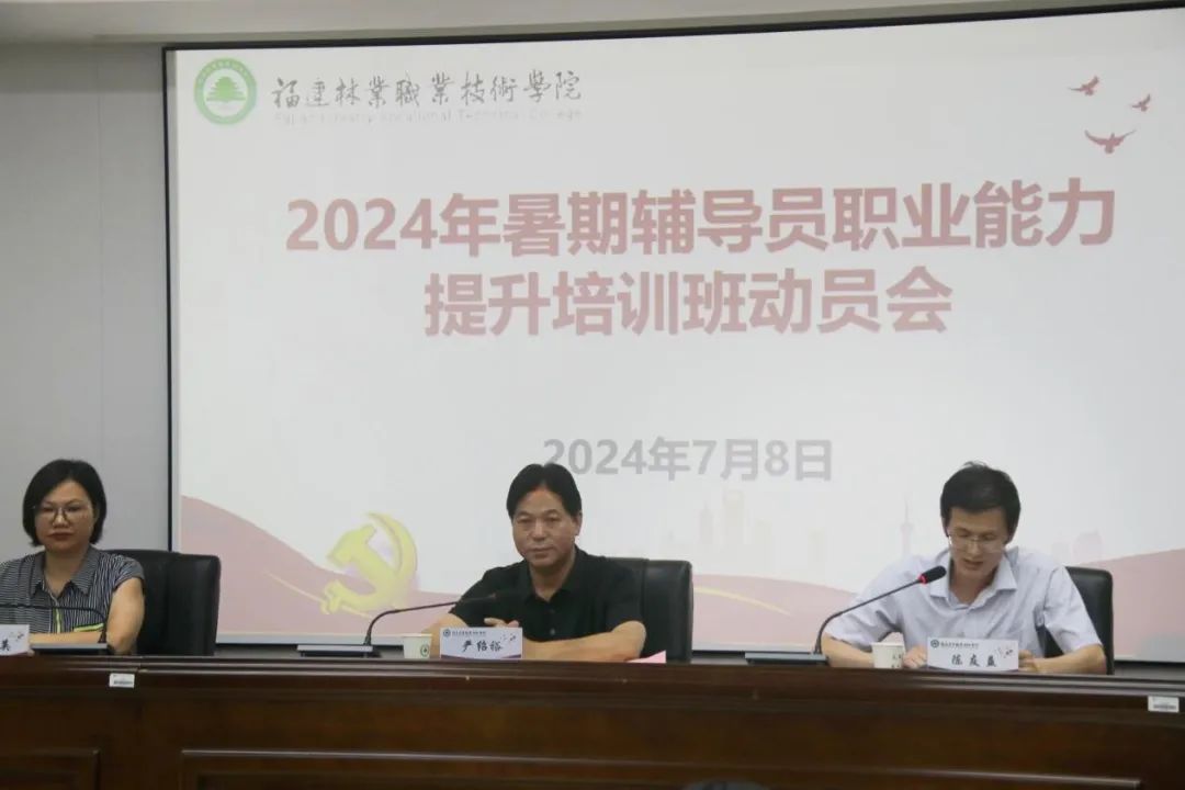 为确保本次培训班高质量圆满举办,2024年7月8日下午,学院在江南校区行政楼六楼会议室举行2024年暑期辅导员职业能力提升培训班动员会,学院党委副书记严绍裕作开班动员讲话。学生工作部部长陈友益、学生工作部副部长陈红英、各系学生科长和全体参训辅导员参会,会议由陈友益部长主持。