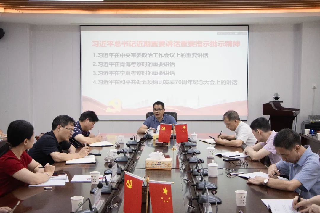 本网讯 7月11日,院党委书记陈建辉在江南校区行政楼五楼会议室主持召开2024年第7次党委理论学习中心组学习(扩大)会,传达学习习近平总书记近期重要讲话重要指示批示精神并提出贯彻意见,开展习近平总书记对福建工作的重要讲话重要指示批示精神和财经纪律专题学习。院党委理论学习中心组成员、各党总支书记、机关处室党支部书记参加学习。