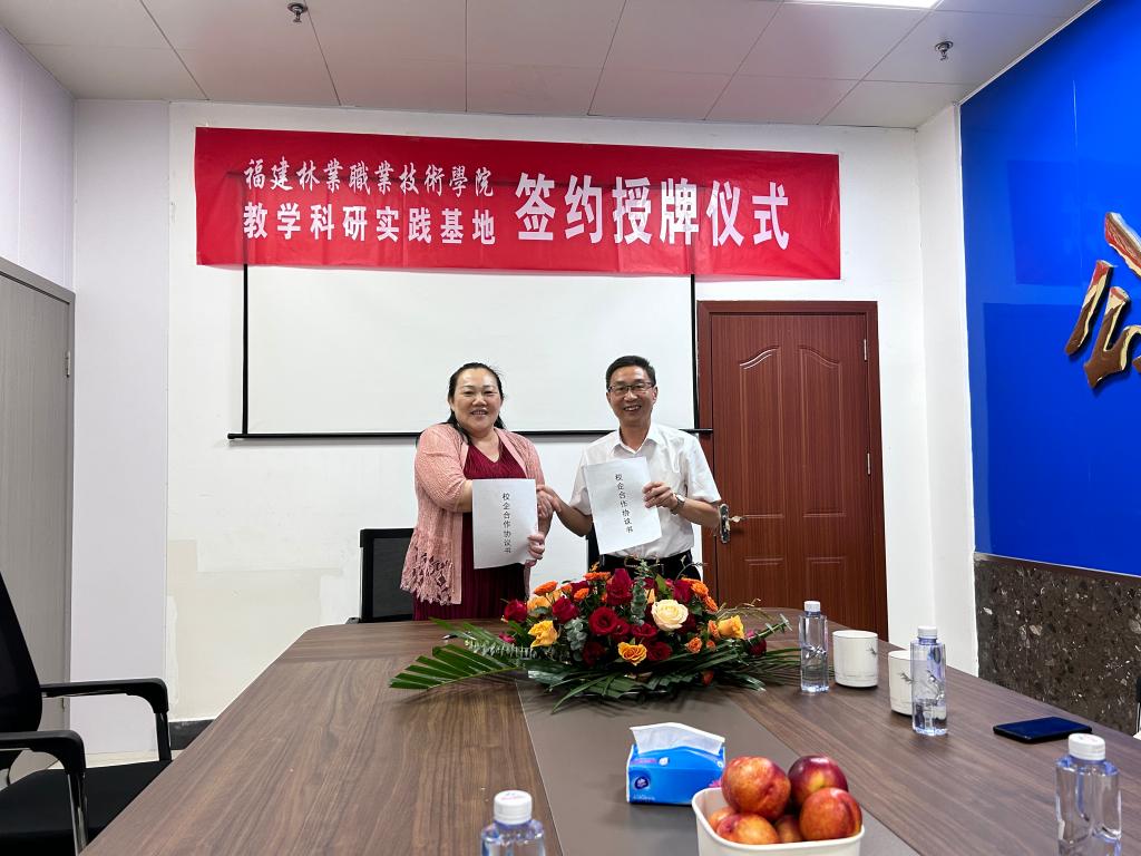 随后,我院李肇锋副院长与一品一码检测(福建)有限公司负责人签订了合作协议,林学系党总支傅成杰书记与瑞得利(福建)检测技术有限公司负责人签订了合作协议,共同为教学科研实践基地揭牌。
