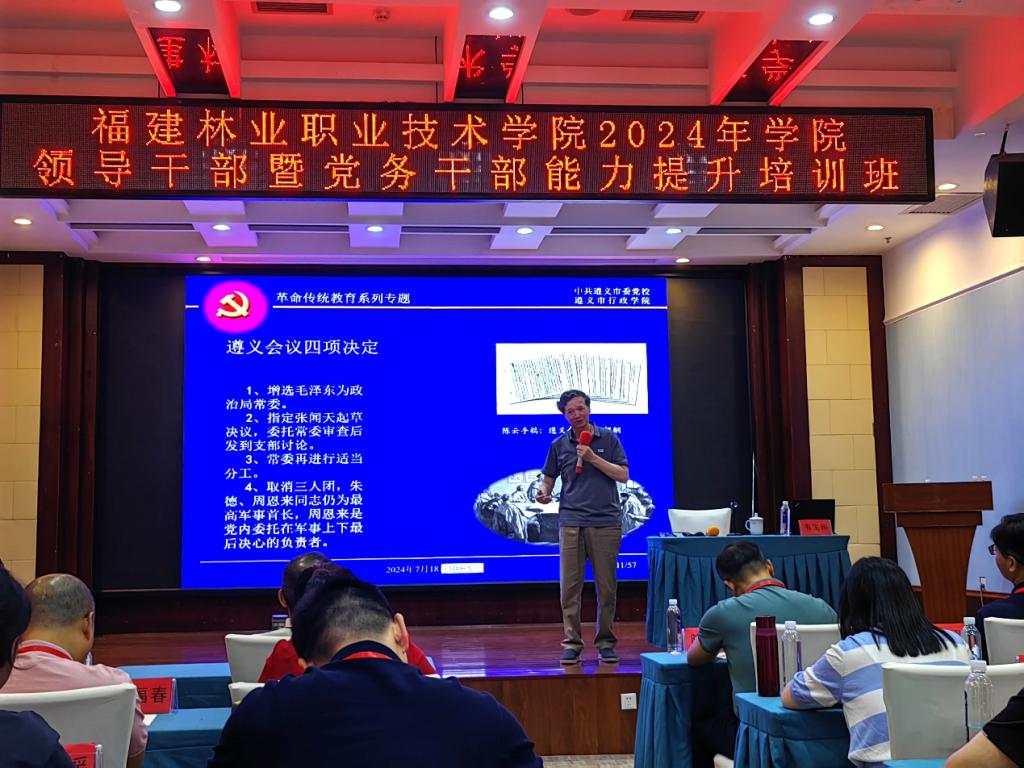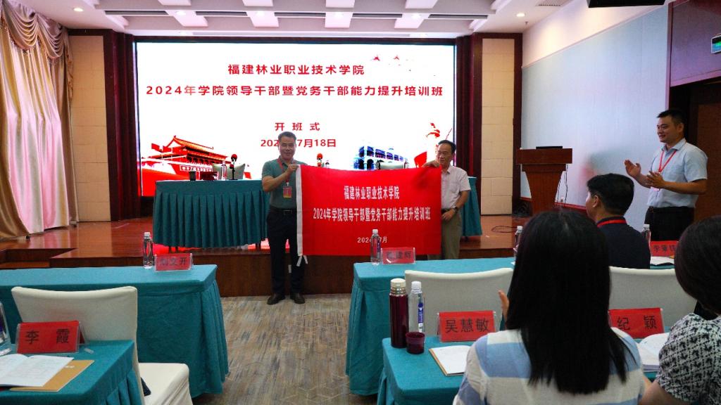 本网讯 为深入学习贯彻习近平新时代中国特色社会主义思想和党的二十大精神,筑牢信仰根基,发扬自我革命精神,传承红色基因,进一步提高学院党员领导干部队伍的政治素质和党建工作水平,2024年7月18日,福建林业职业技术学院2024年领导干部暨党务干部能力提升培训班在中共绥阳县委党校顺利开班。开班仪式在庄严的国歌声中拉开帷幕。