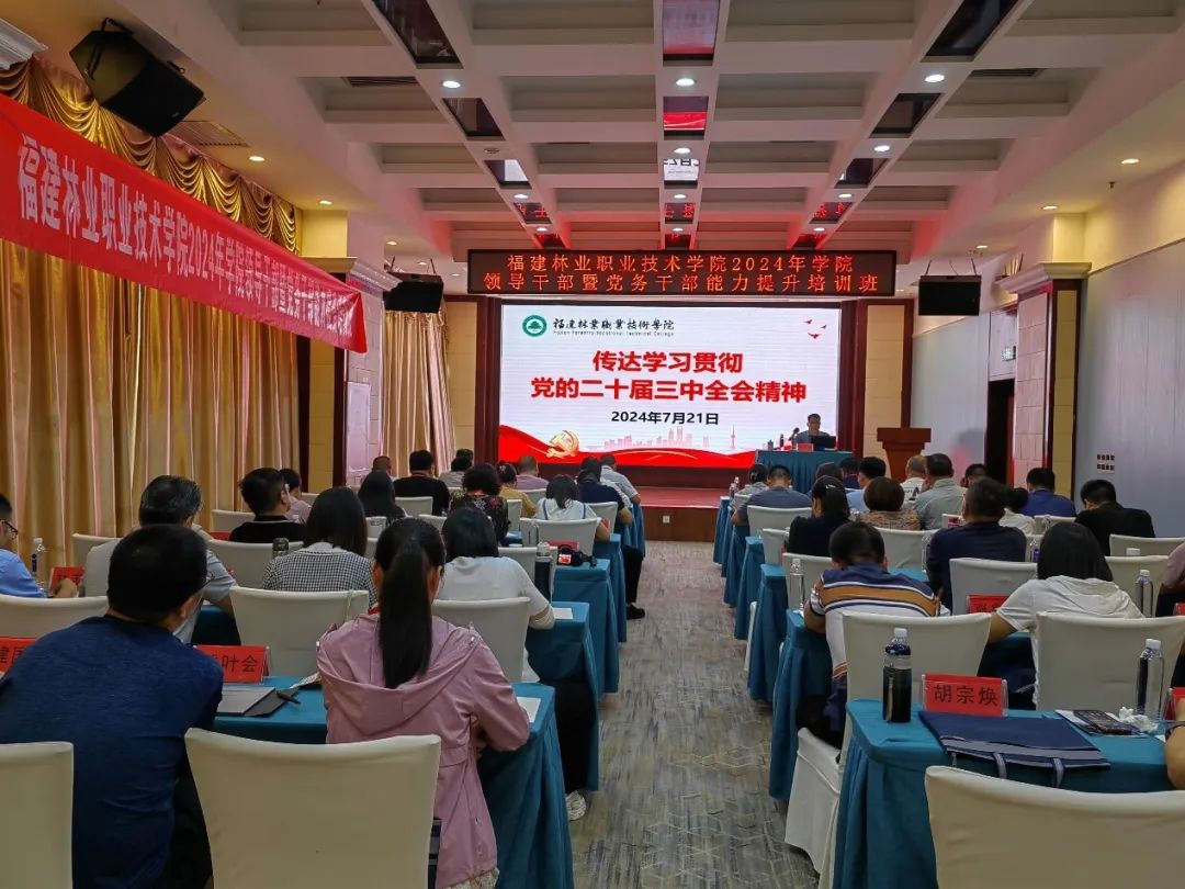 本网讯 7月21日上午,福建林业职业技术学院召开专题会议,传达学习党的二十届三中全会精神,研究部署学习贯彻工作。学院党委书记陈建辉主持会议并讲话,学院副处级以上领导干部及党务干部培训班全体学员参加会议。